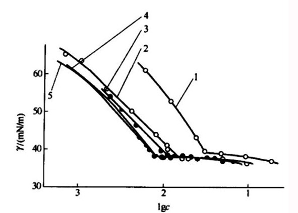 而当表面活性剂浓度大于CMC值时,表面活性剂不会在气液界面上增加排布,而会在液体内部形成胶束或游离等状态,因此拉环法方法不能测出浓度增大时表面张力的区别。